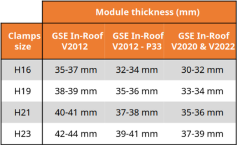 Black end clamps for fixing solar panels onto GSE roof integrated solar PV frames.