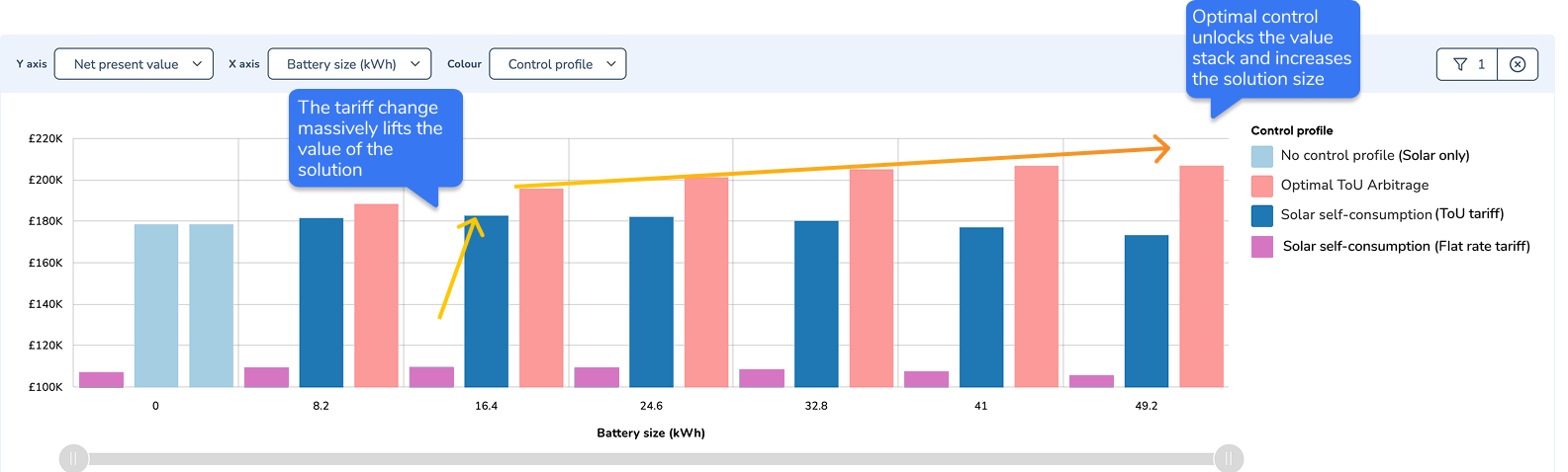 Critically, this also includes matching the right tariff structure to each site. Battery value varies dramatically depending on whether a business is on a time-of-use tariff, has demand charges, or can access flexibility services. Without comparing tariff options alongside battery configurations, you're likely leaving significant value on the table.